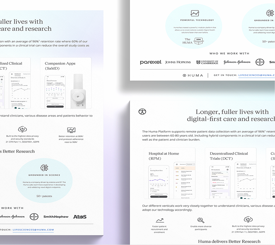 In collaboration with HUMA, I developed a range of specific visual assets, including custom icons, detailed medical illustrations, comprehensive presentation designs, and essential print promotional materials.